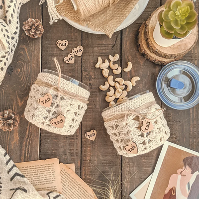 Cozy up your storage spaces with these beautifully handcrafted canisters. The sleeves made with hand-woven crochet work will elevate your cabinets, desktops, and shelves into a feel-good space.