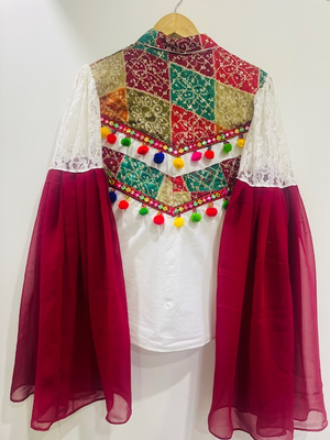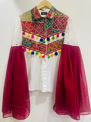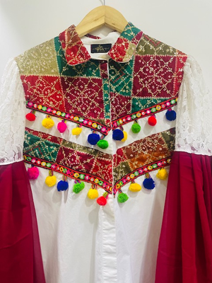 Get your Hands on this beautifully handcrafted cotton shirt that comes with multicolour patchwork all put together to give you a festive feel. We have already tried working with dual cloth Sleeves thus giving it a more elegant look.